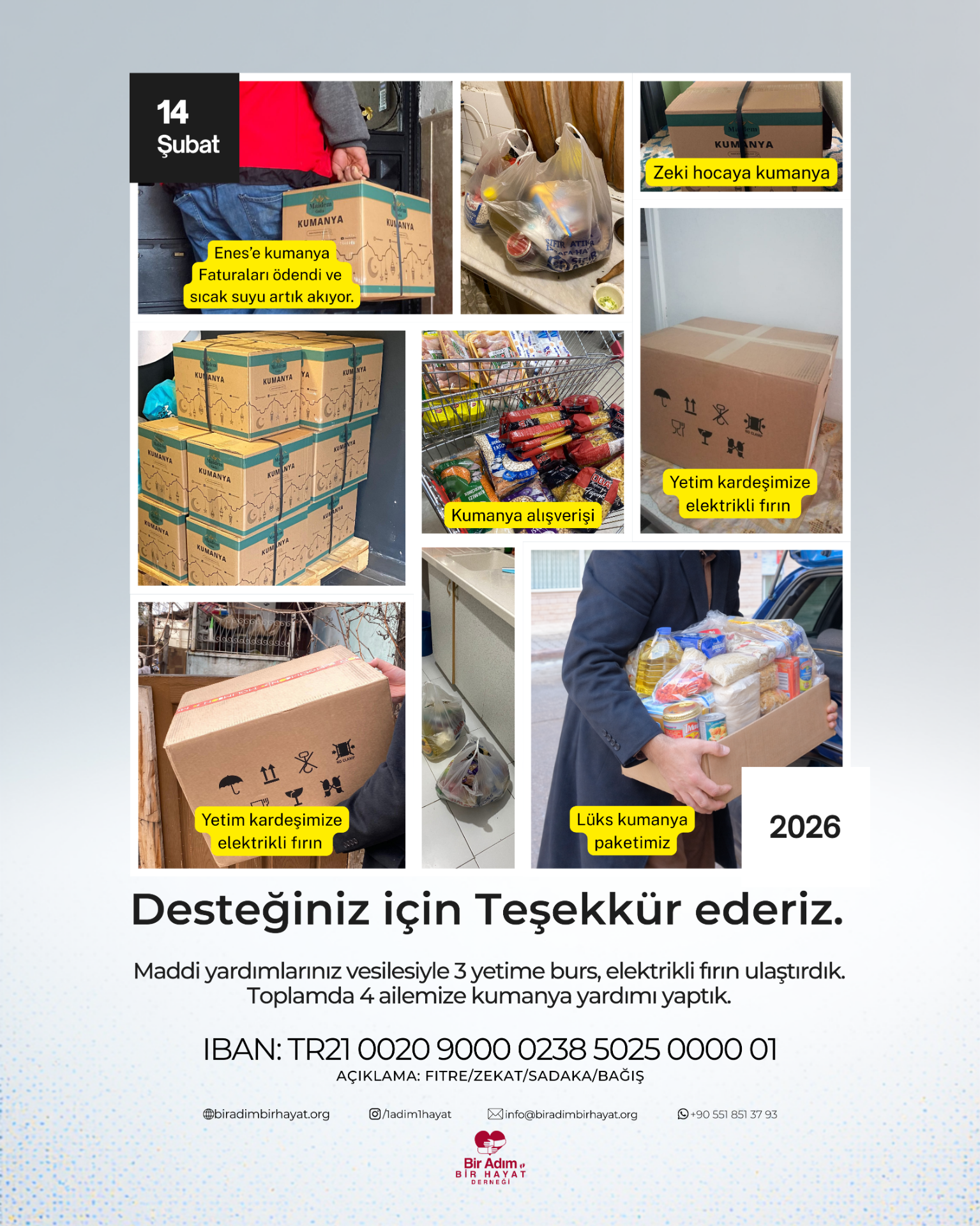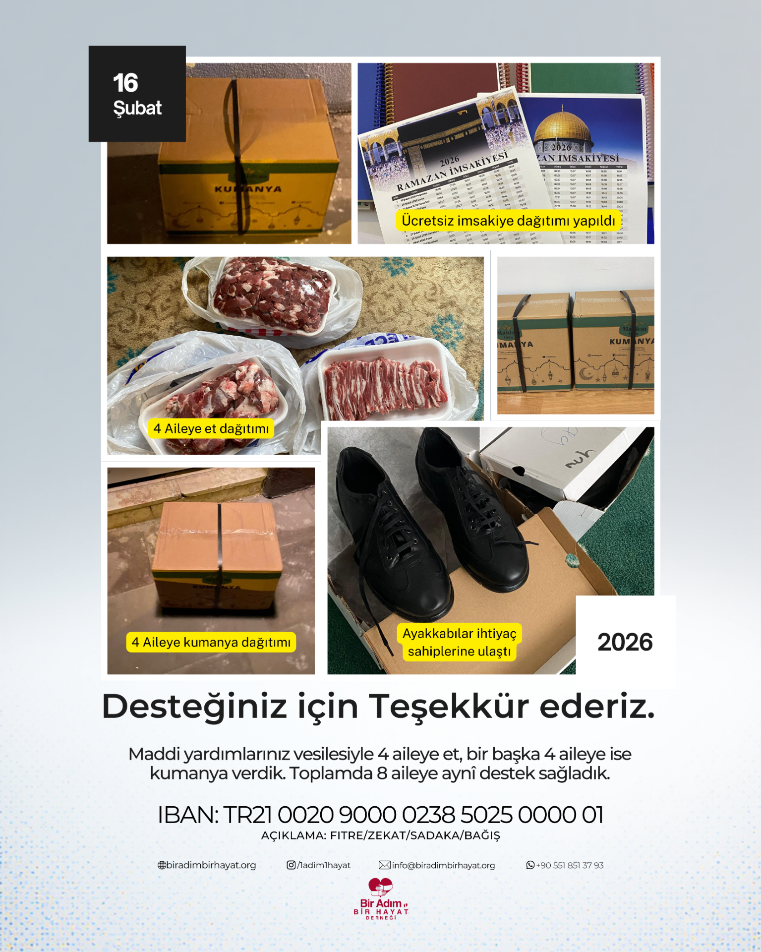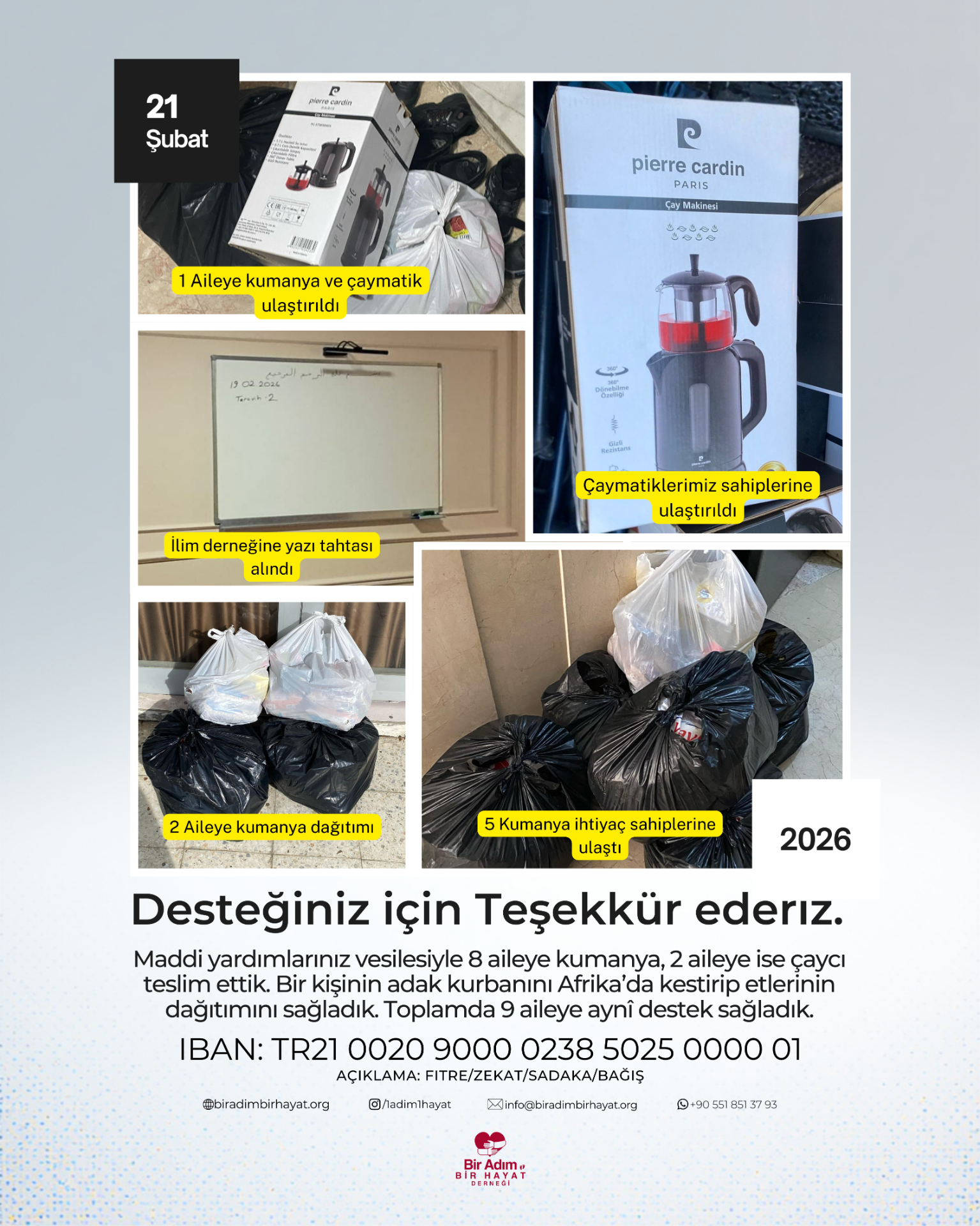 8 Kişilik bir ailenin yıllık kirası, erzak ve kışlık kıyafet yardımı yapıldı.